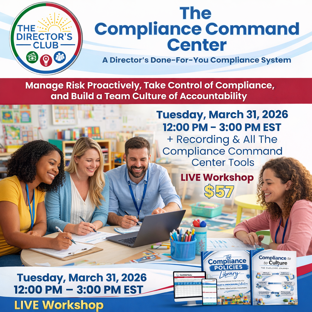 Ready to take control of compliance and get your center running just how you want it? This done-for-you system simplifies licensing, strengthens your team, and creates consistency across your entire center.