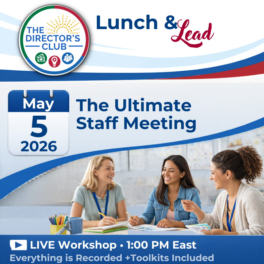 Ready to transform your staff meetings from routine check-ins into one of the most powerful leadership tools in your center? This workshop takes everything you’re already doing and elevates it — with a model that incorporates professional development, center goals, and a collaborative approach that keeps your team engaged all year long.